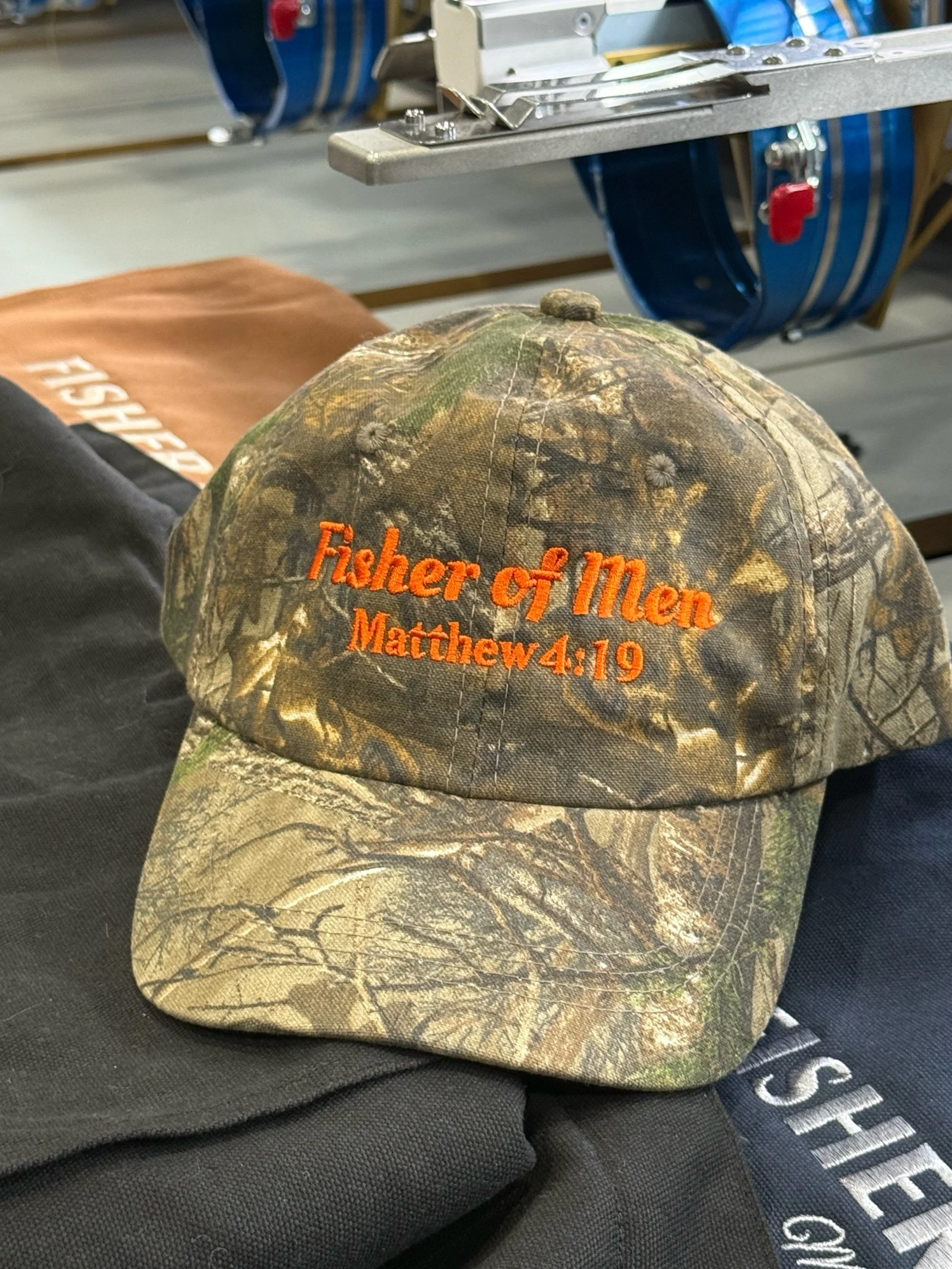 Complete your workwear look with the Fishers of Men Camo Cap — rugged, practical, and rooted in the call of Christ. Inspired by Matthew 4:19: “Then He said to them, ‘Follow Me, and I will make you fishers of men.’” (NKJV). This cap is a subtle yet powerful way to share your faith wherever you go.